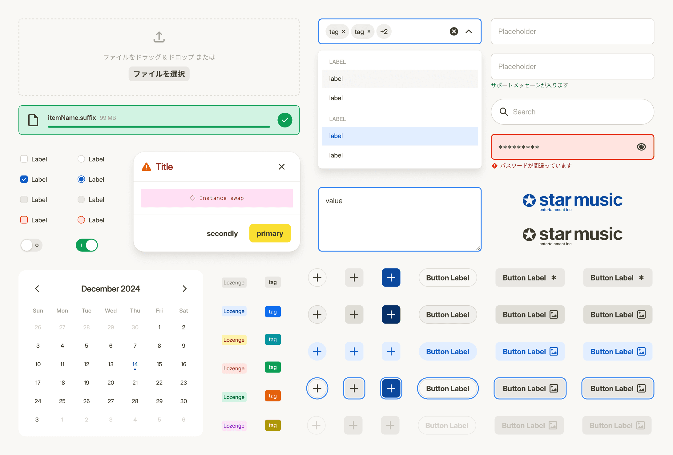 所属する株式会社スターミュージック・エンタテインメントのデザインシステム「Interstellar(インターステラー)」の構築プロジェクトです。クリエイティブやデザインの一貫性を保ちながらブランドを体現することと、デザインプロセスの効率化を目的としています。